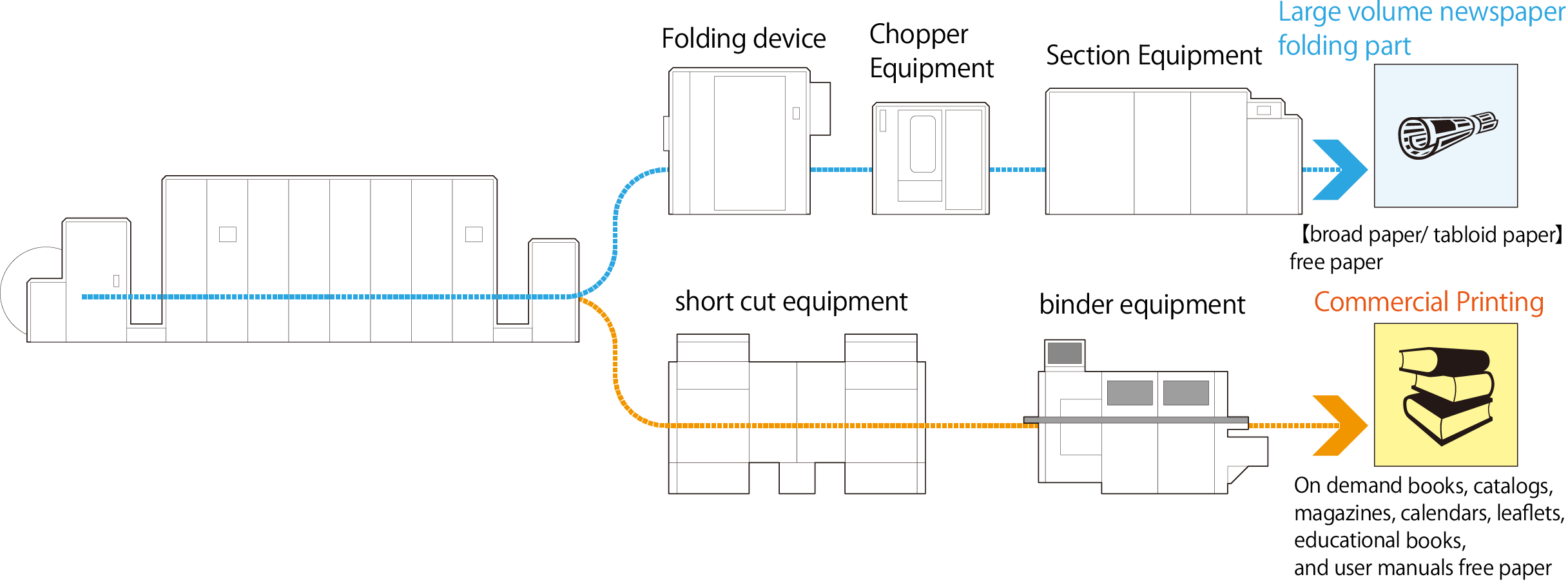 JETLEADER total system with original folding equipment to output the final product by inline. The most suitable production environment can be built to meet each needs by linking various processing machine.