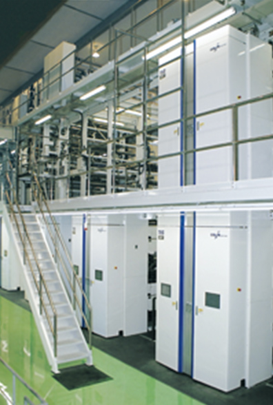 给纸装置从地下式改成同床式,使给纸、印刷、折纸部都安装在同一楼层,和纵向堆叠型机械比较,操作者不必分散在印刷楼层和给纸楼层就可以监控全部设备,作业效率有了飞跃性的提高,达到了削减操作人数,省人化・省力化的目的。