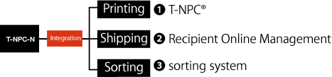 “T-NPC-N” is an efficient newspaper production control system which combined with ❶ T-NPC’ that operates newspaper press pre-set, ❷ recipient Online system to manage shipping address ❸ newspaper sorting and shipping management using “sorting system”. By integrating the printing, shipping and sorting systems into “T-NPC-N”, information that was previously managed independently by each system can be shared. The system can automatically track the changes of input data, changes in various data in operation, manage the pre-set-up of wheel transfers, send control, sorting operations and so on.